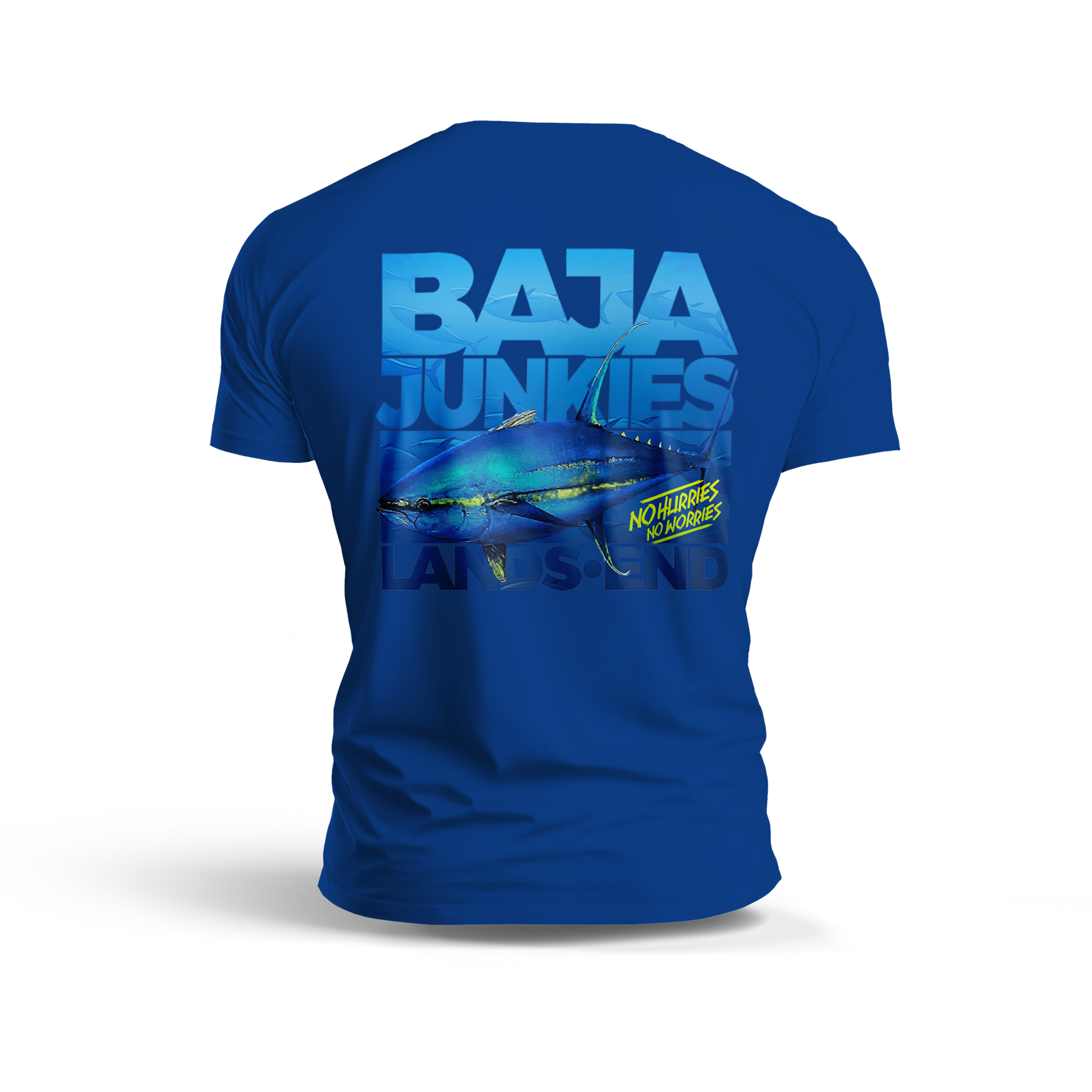 From the Baja Junkies Lands end collection. The "End" Tee is a 100% Cotton Black Color T-shirt with a multicolor screen-print on the front LC, and on the back. Screen-printed by our sister company Ntensetees.com